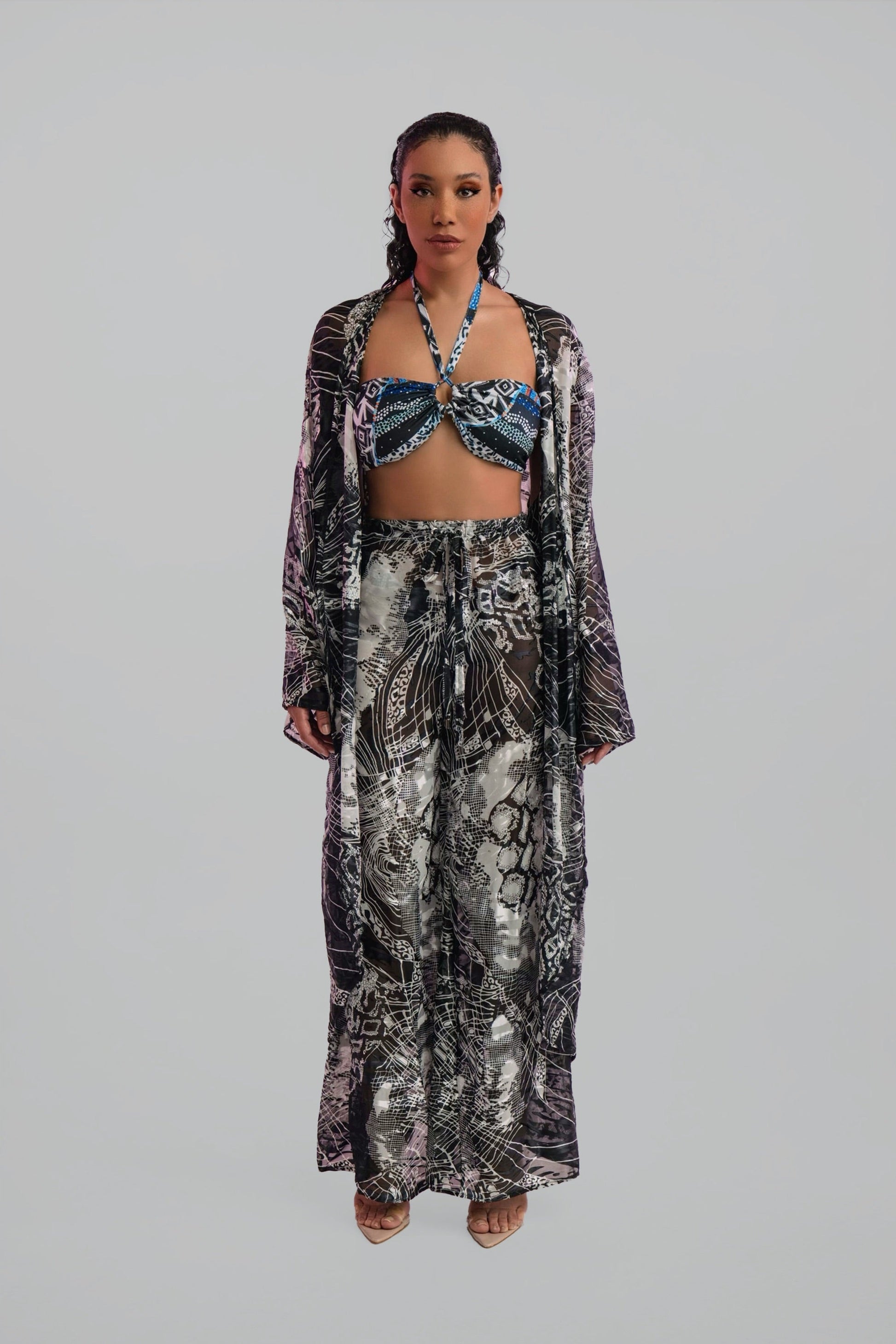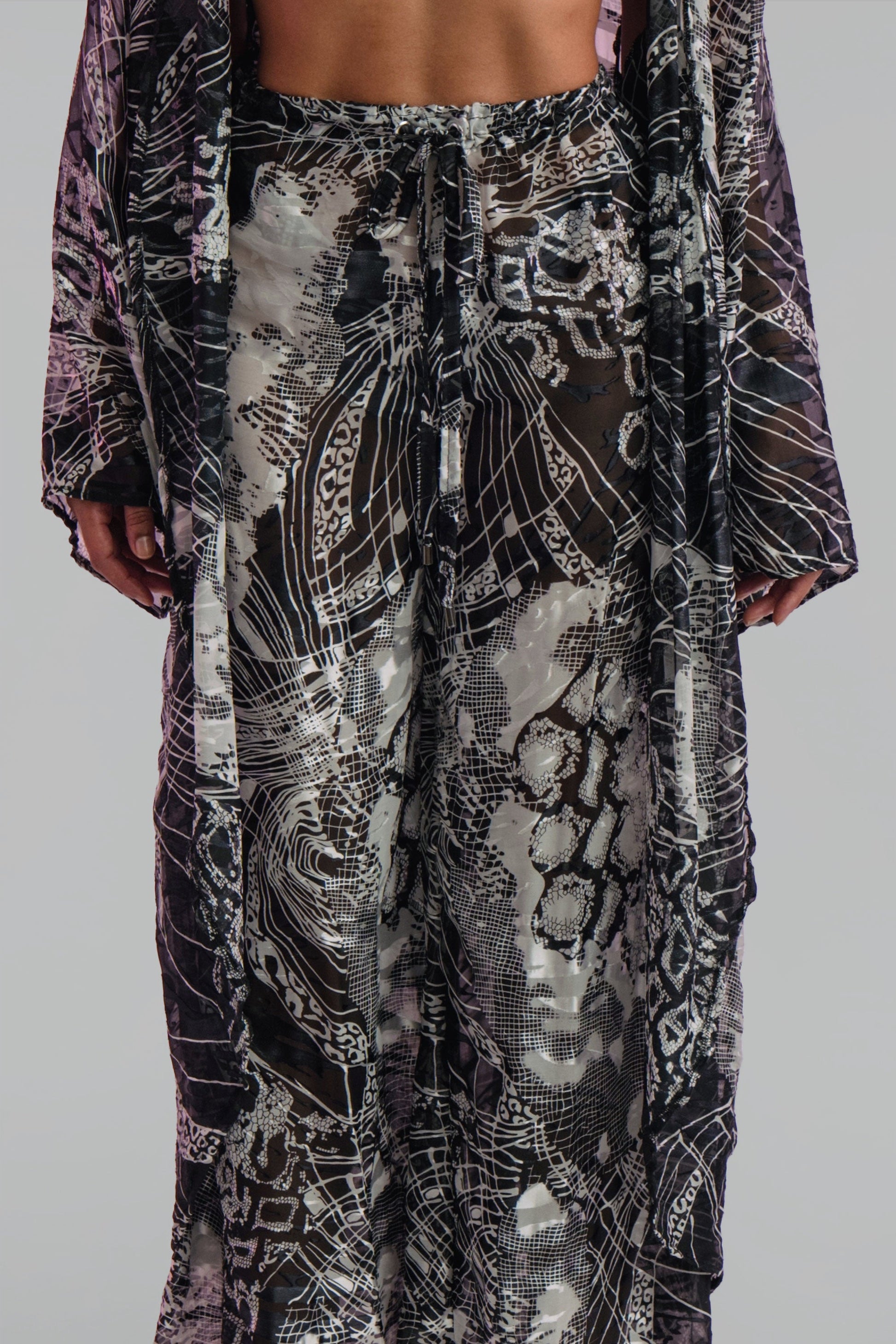 The Sina Silk Pants showcase an intricate black and white graphic print and include a drawstring waistband for a custom fit and all-day comfort. The Sina Silk Pant Set is designed to evolve with you, becoming a timeless closet staple for years to come.