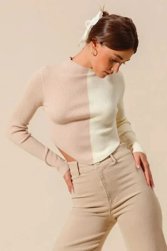 Discover the So Me Color Block Fitted Crop Sweater Top, a premium fusion of modern color-blocking and refined knitwear designed for women who crave versatility. This sophisticated dual-tone pullover features a premium ribbed knit construction and a seamless color transition that creates visual interest without sacrificing minimalist elegance.